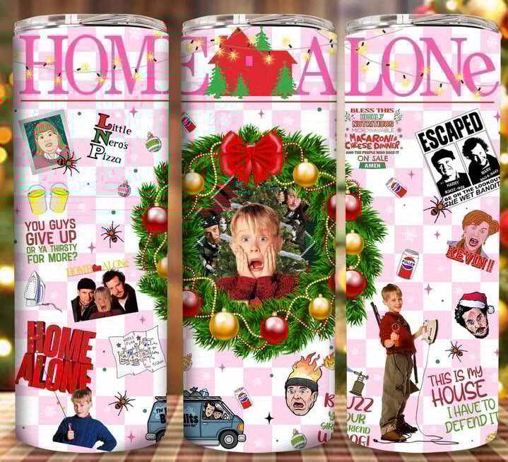 Pink home alone 20oz subliamtion tumbler
